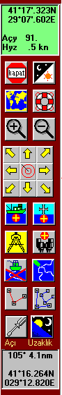 tarafında teknenin o andaki konumu enlem ve boylam cinsinden , gidiş istikamet açısı